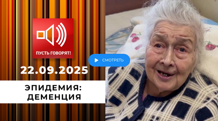 Пусть говорят 18.09.2025 сегодня: эфир от 18 сентября 2025 (18.09.2025) с ведущим Андреем Малаховым. Сегодняшний, вчерашний, и все последние выпуски программы онлайн.18 сентября в программе Пусть говорят 18.09.2025 смотреть онлайн В Подмосковье на загруженной автомагистрали обнаружили замерзшую девочку, лицо которой посинело от леденящего холода. Она выбралась на проезжую часть, спасаясь от ветра, и, что особенно шокирующе, была там оставлена собственной бабушкой. Деменция рискует превратиться в современную эпидемию, поскольку против нее отсутствуют как прививки, так и эффективные медикаменты. Это заболевание не делает различий, способно проникнуть в любую семью. Каким образом можно оказать поддержку пациентам с таким диагнозом, и, что особенно важно, как облегчить жизнь тем, кто ухаживает за ними ежедневно?