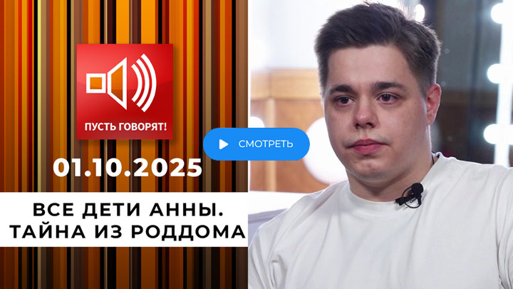 Пусть говорят 01.10.2025 сегодня: эфир от 1 октября 2025 (1.10.2025) с ведущим Андреем Малаховым. Сегодняшний, вчерашний, и все последние выпуски программы онлайн.1 октября в программе Пусть говорят 01.10.2025 смотреть онлайн Эта реальная история, которая могла бы стать основой для захватывающего бразильского телесериала, раскрывает драматические тайны семейных связей. Молодой человек, которого мать бросила в роддоме, спустя 22 года открывает для себя истину о своём происхождении. Его поиски родной матери приводят к обнаружению других детей, которых она также оставила. С оглушительным шумом скрытые в пыльных шкафах семейные секреты выходят на свет, заставляя всех столкнуться с неожиданными открытиями. Люди, которые прибыли сегодня в студию, могут оказаться кровными родственниками, хотя сами об этом не подозревают. Подтвердит ли анализ ДНК их связь, и принесёт ли это знание радость или же лишь боль? И самое важное, сумеет ли он отыскать исчезнувшую мать, которая отвернулась от всей своей семьи?