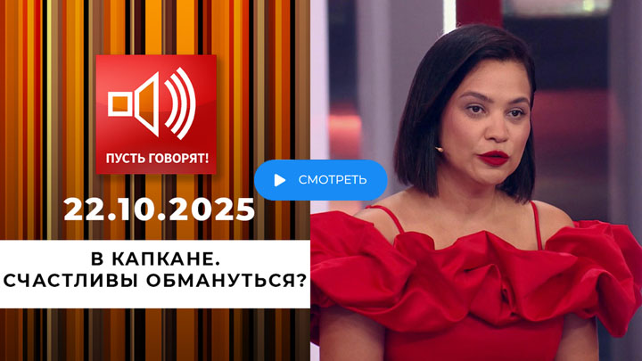 Пусть говорят 22.10.2025 сегодня: эфир от 22 октября 2025 (22.10.2025) с ведущим Андреем Малаховым. Сегодняшний, вчерашний, и все последние выпуски программы онлайн.22 октября в программе Пусть говорят 22.10.2025 смотреть онлайн Сказки о красивой жизни и прекрасной любви. Куда завели мечты наших героинь? Они так хотели настоящей любви. Она мечтала о ней много лет. Эта мечта пережила и неудачный брак, и тяжелый развод, и роман, закончившийся так же плохо, как и брак. Она почти отчаялась, когда появился он. Он сказал, я твоя судьба. И она сразу поняла, что это правда. Сенсационная развязка любовного романа, начавшегося в сети