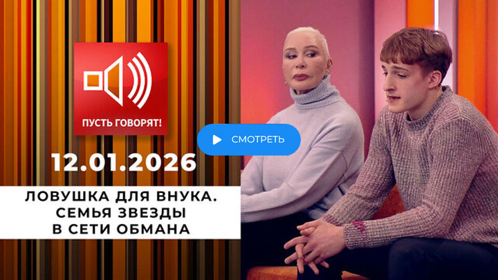Пусть говорят 19.01.2026 сегодня: эфир от 19 января 2026 (19.01.2026) с ведущим Андреем Малаховым. Сегодняшний, вчерашний, и все последние выпуски программы онлайн.19 января в программе Пусть говорят 19.01.2026 смотреть онлайн Ловушка для внука. Семья звезды в сети обмана. Современные преступники не влезают в форточки и не вскрывают сейфы. Они взламывают психику. Их жертвами все чаще становятся беззащитные дети. На особом прицеле дети и внуки богатых и знаменитых. Как телефонным мошенникам удалось вынудить внука народной артистки России Татьяны Васильевой отдать семейные сбережения? И почему родители не смогли остановить ребенка, который несколько дней был на связи с аферистами? Народную артистку России Татьяну Васильеву с пугающей регулярностью атакуют мошенники. Они уже требовали от звезды 30 миллионов рублей, прикрываясь влиятельными фамилиями. Один из подозрительных звонков закончился кражей 200 тысяч рублей с ее банковского счета. Не так давно они пытались обмануть Татьяну Васильеву по старой схеме с имитацией звонка от сына, якобы попавшего в ДТП. Так и не сумев похитить все сбережения у самой народной артистки, телефонные мошенники переключились на членов ее семьи. В конце декабря ушедшего года стало известно, что их жертвой стал внук Татьяны Васильевой, 15-летний Григорий. Преступники были на связи с внуком Татьяны Васильевой почти целую неделю. За это время они не только выяснили, где родители Гриши и сколько денег они хранят дома, но и забрали их деньги себе. Сколько денег смогли заполучить циничные мошенники из рук испуганного подростка? Как на случившееся отреагировала его знаменитая бабушка? Кто присылает сообщения с угрозами родным народной артистки России Татьяны Васильевой? Сама Татьяна Васильева сегодня в студии Пусть говорят